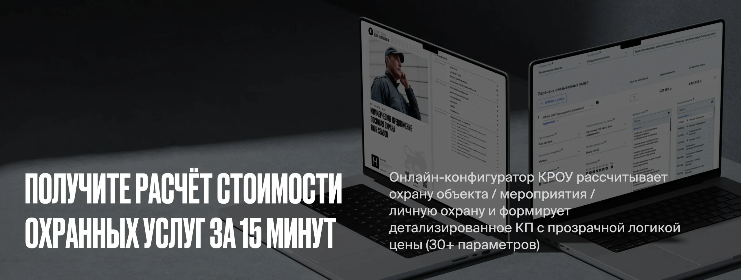 Собственная программа для создания персонального коммерческого предложения по физической безопасности с автоматическим расчетом стоимости.